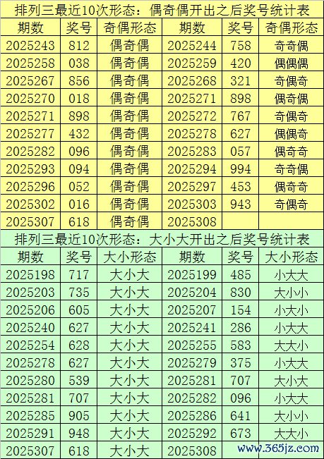 摆列三最近10次同期开寥落偶格式:偶奇偶和大小格式:大小大时其奖号分离为:816-638-838-838-618-818-836-816-816-638-618,下期分离开出号码为:302-733-451-457-924-958-707-434-324-250,防护统计见下表:
